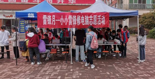中午志愿者们来到建设银行门口支起了帐篷、搬桌椅,设立好服务点,不一会儿求助的同学们便陆续到来......现场氛围火热,需要维修电脑的同学们详细地向志愿者们详述着自己电脑遇到的问题,志愿者们也运用自己所学的专业知识尽力地帮助同学们解决问题,修复电脑。问题解决后,同学们和志愿者的脸上都露出了笑容,他们微笑的面容不亚于春天绽开的花儿一般绚烂,雷锋精神也被在校园里弘扬开来。