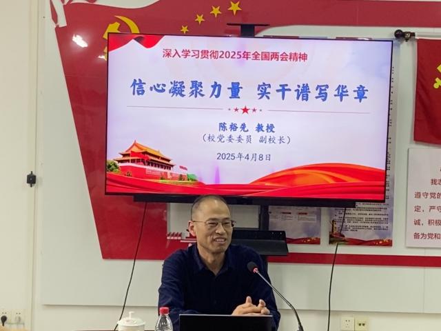 陈裕先全面介绍了2025年全国两会概况,包括会议时间、地点、议程及特点,指出两会彰显了我国政治制度优势和民主活力。在解读习近平总书记在两会重要讲话精神时,陈裕先指出,习近平总书记强调江苏要在多方面发挥带头示范作用,科技创新和产业创新是发展新质生产力的关键路径。同时,总书记对改革、开放、民生、党建等工作提出明确要求。